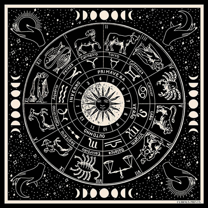 100% Silk Scarf Zodiac Signs Astrology Bandana Tapestry
