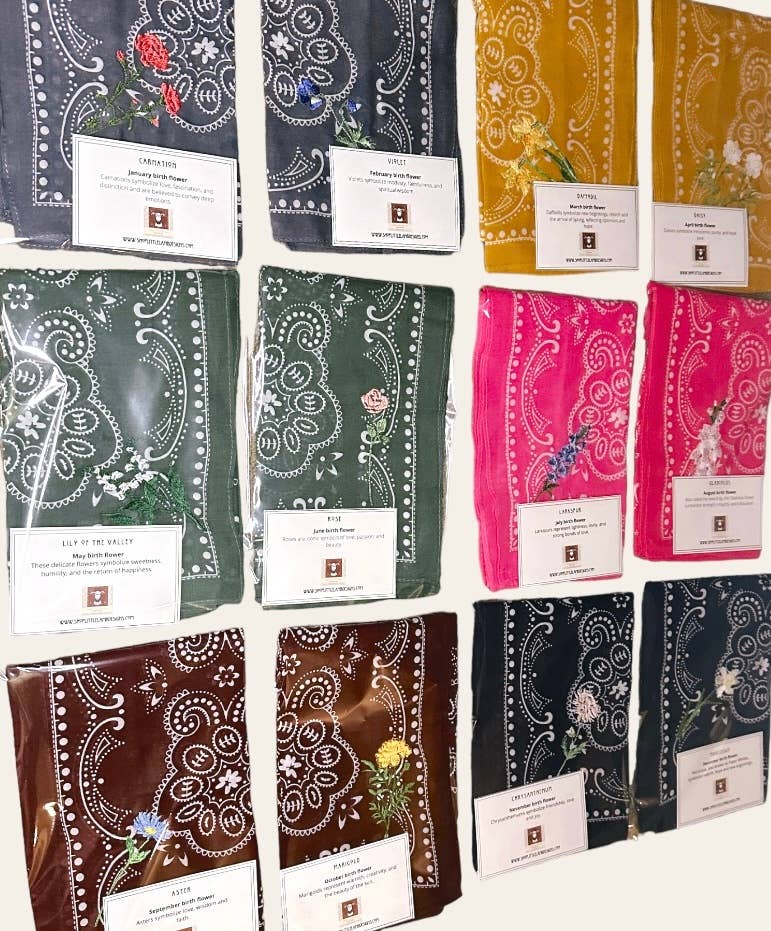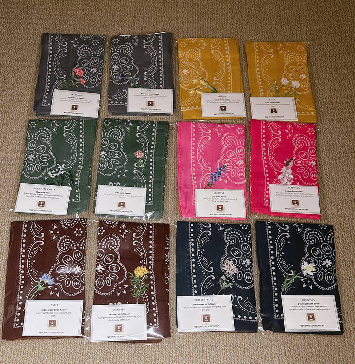 Birthday Flower (March = Daffodil) Embroidered On Bandana