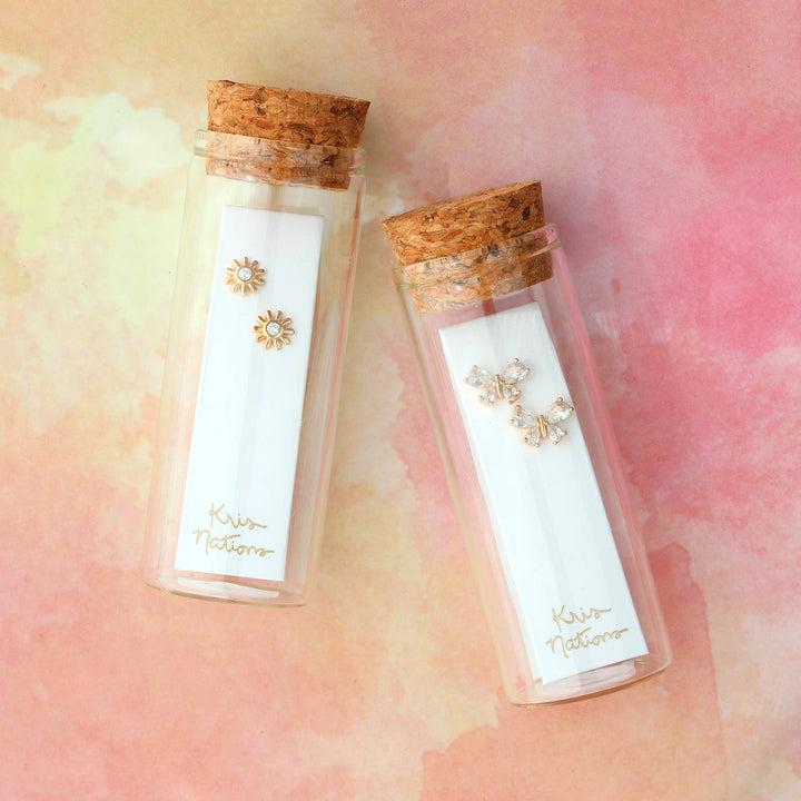 Butterfly Crystal Marquis Stud Earrings 18K Gold Vermeil CZ Crystals 8mm Wide Nickel Free Hypoallergenic Ships from CA