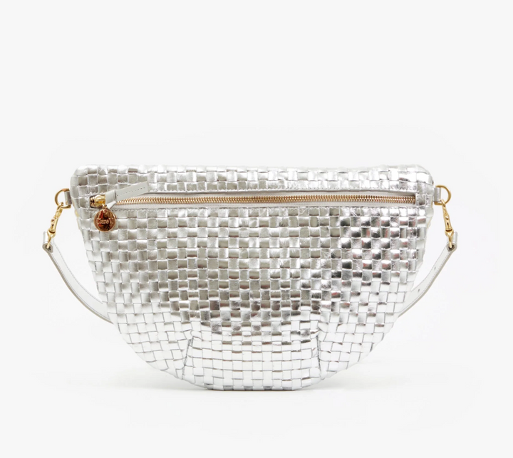 Clare V. Grande Fanny Silver Specchio Woven Checker