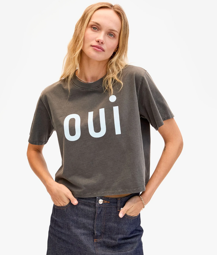 Clare V. Le Carré Tee Faded Black w/ Sky Blue Oui
