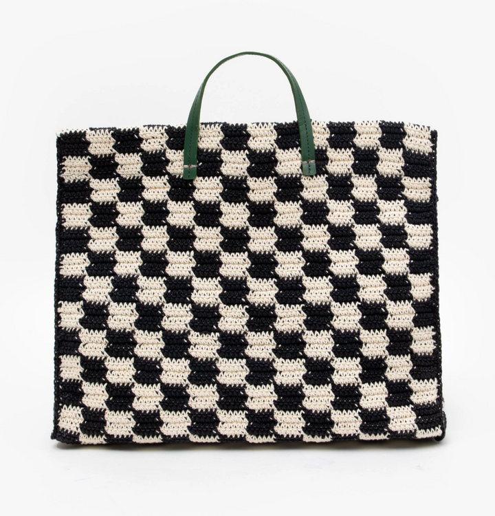 Clare V.-Summer Simple Tote- Black & Cream Crochet Checker