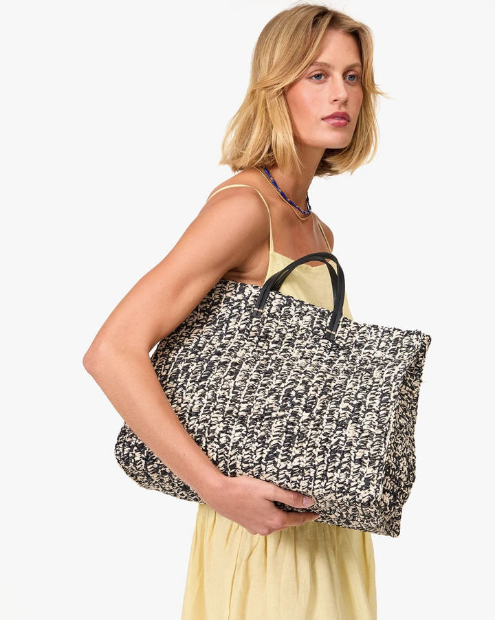 Clare V. Summer Simple Tote Black/Cream Raffia