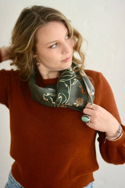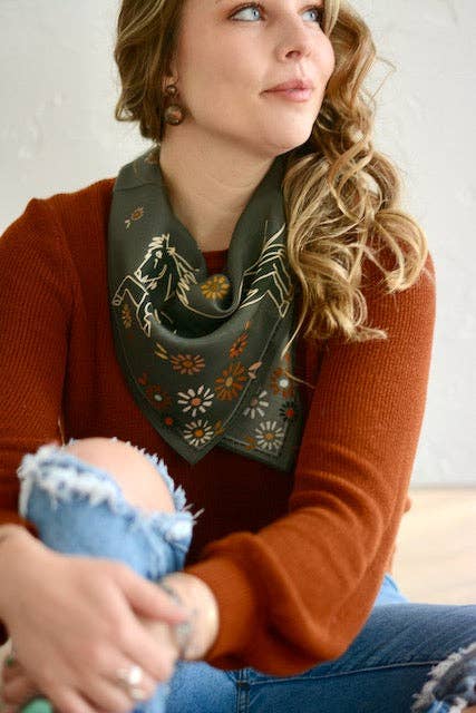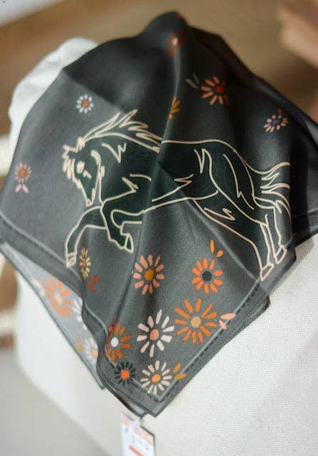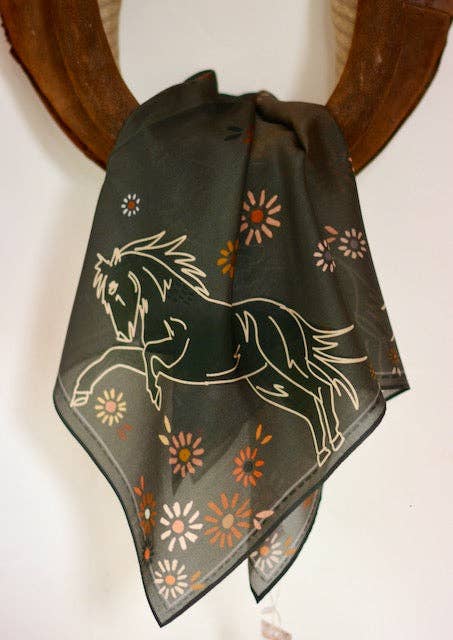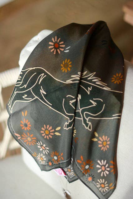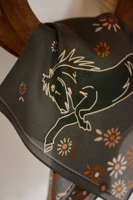 Floral Daisy Charcoal Bucking Horse Silk Wildrag Scarf