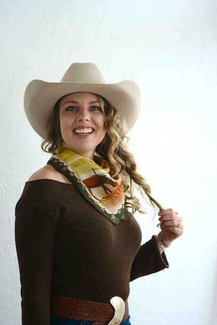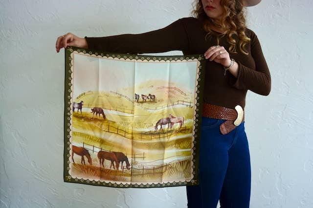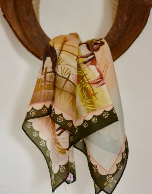 Grazing Pasture Western Cowgirl Horses Silk Wild Rag Scarf