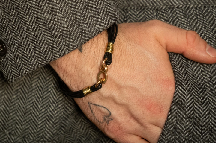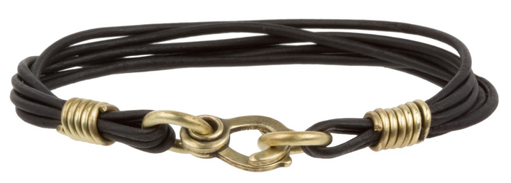 LHN- Leather Strand Bracelet- Brass- Black Leather