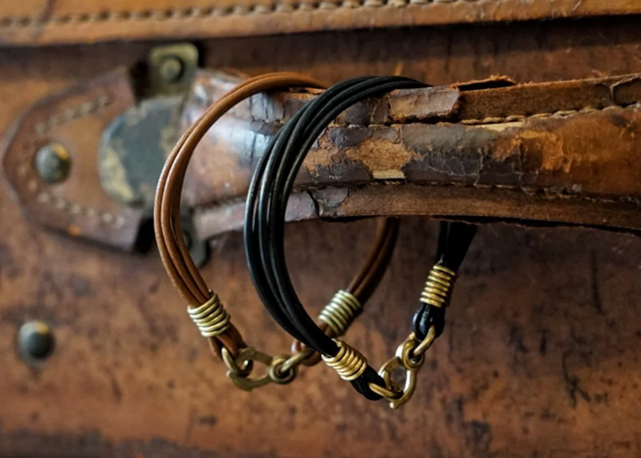 LHN- Leather Strand Bracelet- Brass- Brown Leather