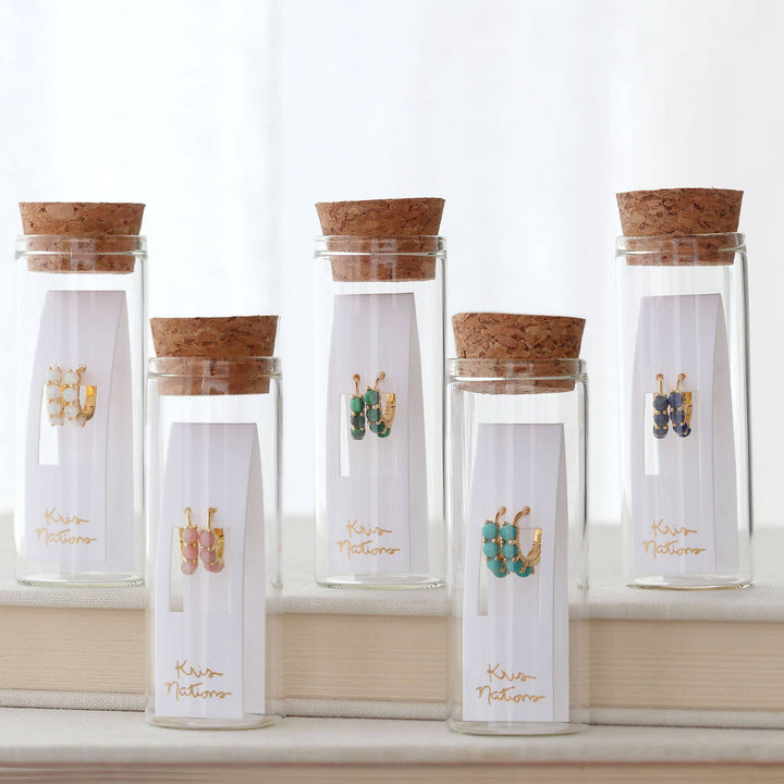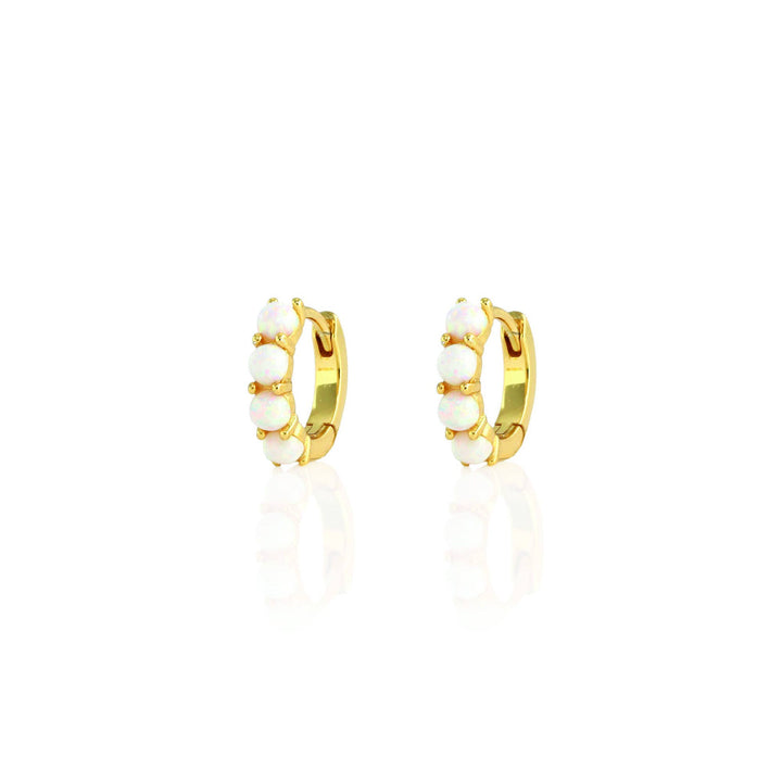 Opal Huggie Hoop Earrings 18K Gold Vermeil 13mm Hoops 3mm Stones Hinge Closure Nickel Free Hypoallergenic Ships from CA
