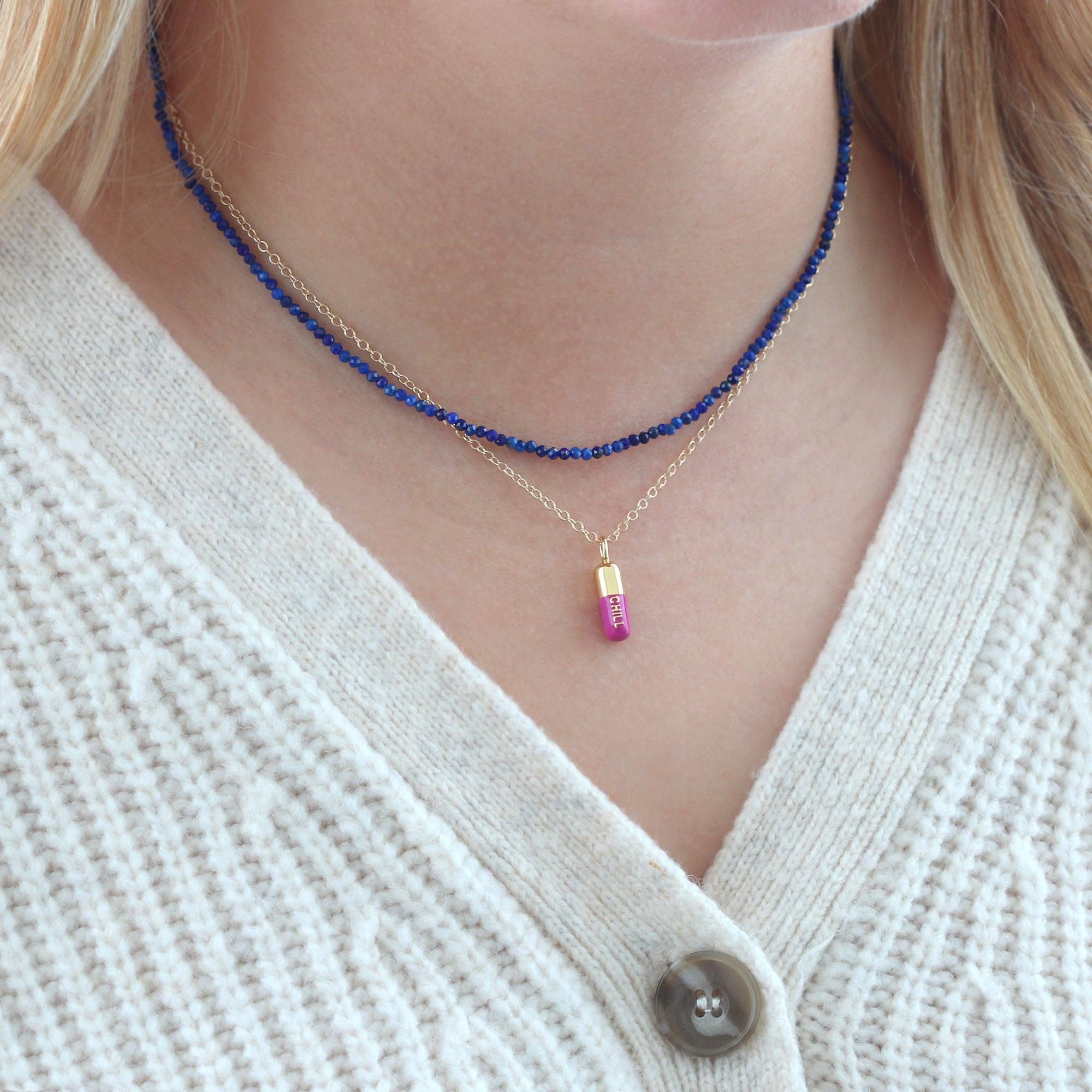 Petite Gemstone Beaded Necklace Red Carnelian Green Malachite Blue Lapis Black Onyx Ships from CA