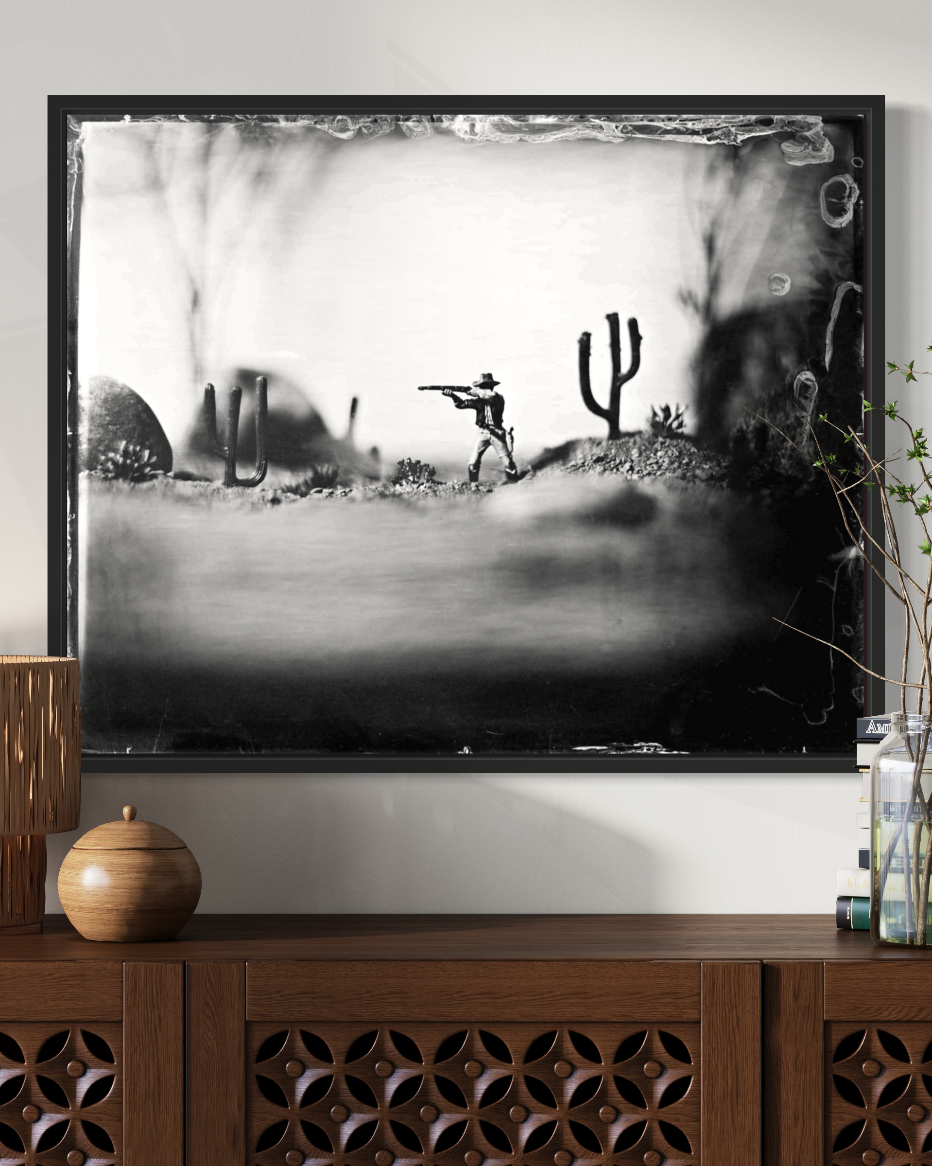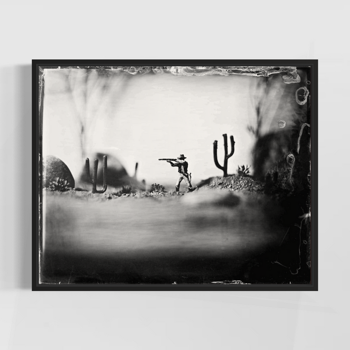 This is the image that started it all! In his "Western Nostalgia" series, Ryan uses the wet plate collodion photography technique from the late 1800's to capture photos inspired by his youth spent growing up on Colorado ranches. The photographic method lends itself to creating macro worlds that bring Ryan's handmade dioramas to life.