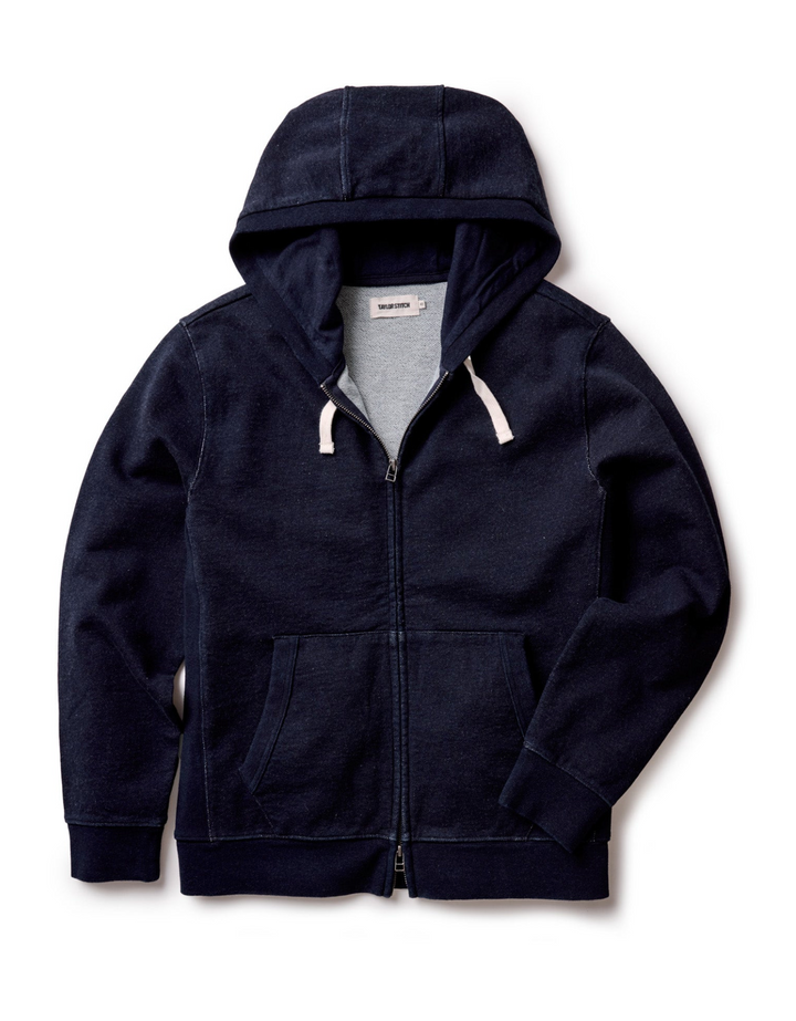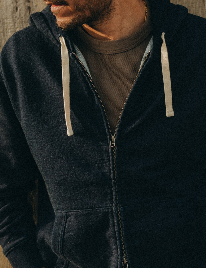 Taylor Stitch- The Après Zip Hoodie in Rinsed Indigo Terry