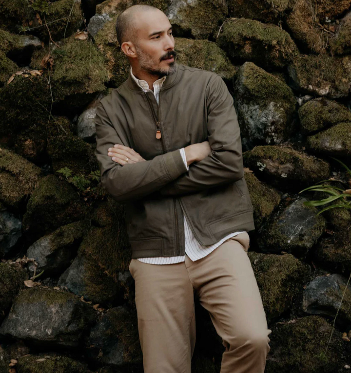 Taylor Stitch- The Bomber Jacket in Fatigue Olive Dry Wax