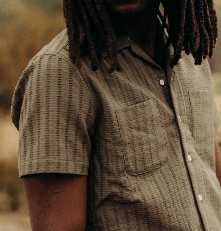 Taylor Stitch- The Conrad Shirt- Fatigue Olive Dobby Stripe