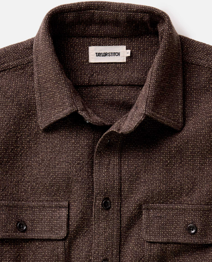 Taylor Stitch- The Ledge Shirt in Black Coffee Linen Tweed