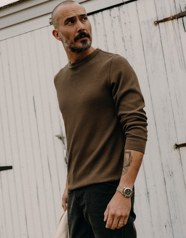 Taylor Stitch- The Organic Cotton Crew in Fatigue Olive Waffle