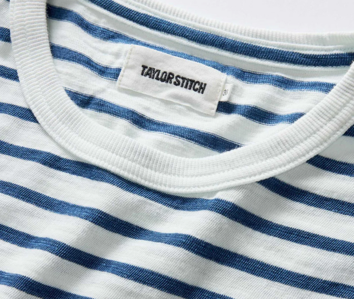 Taylor Stitch- The Organic Cotton Long Sleeve Tee in Indigo Stripe