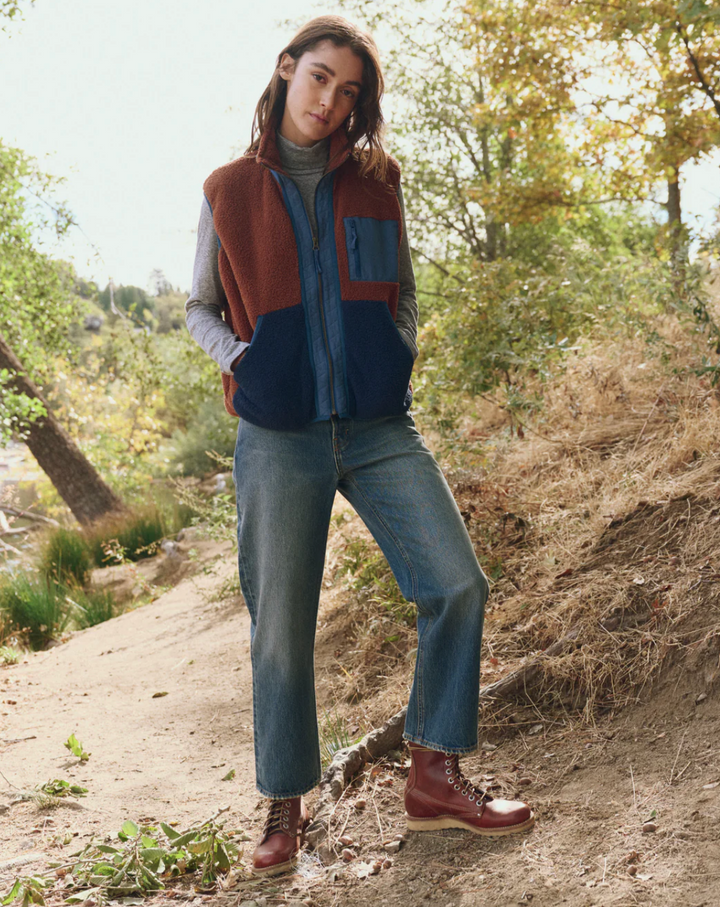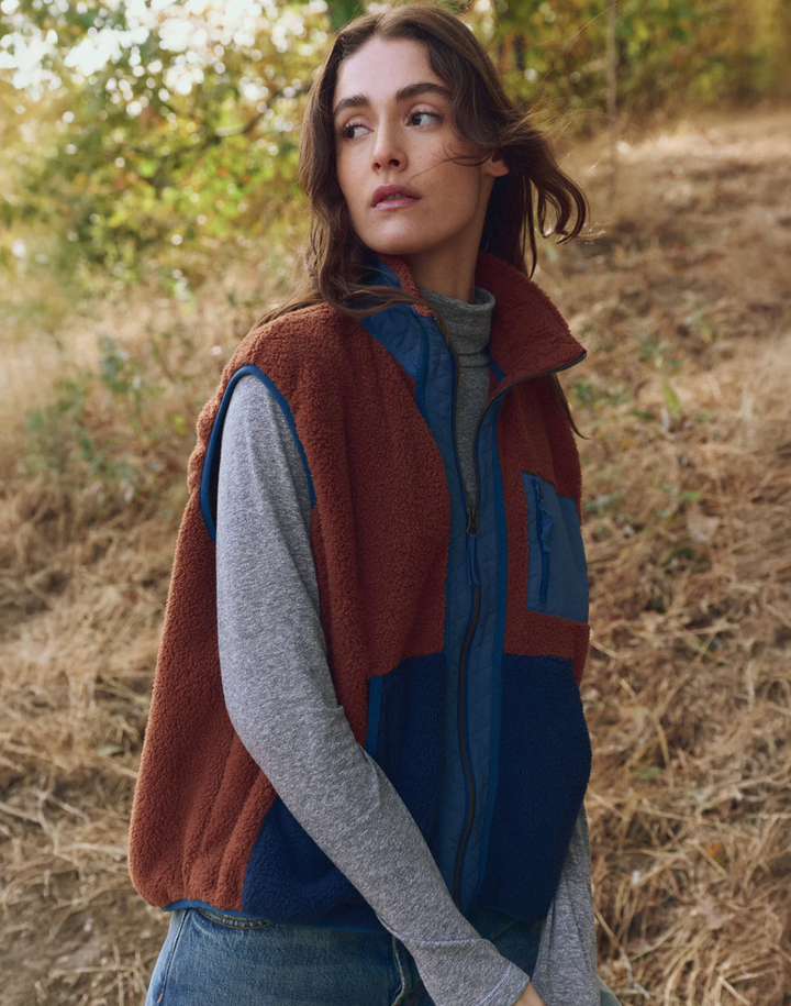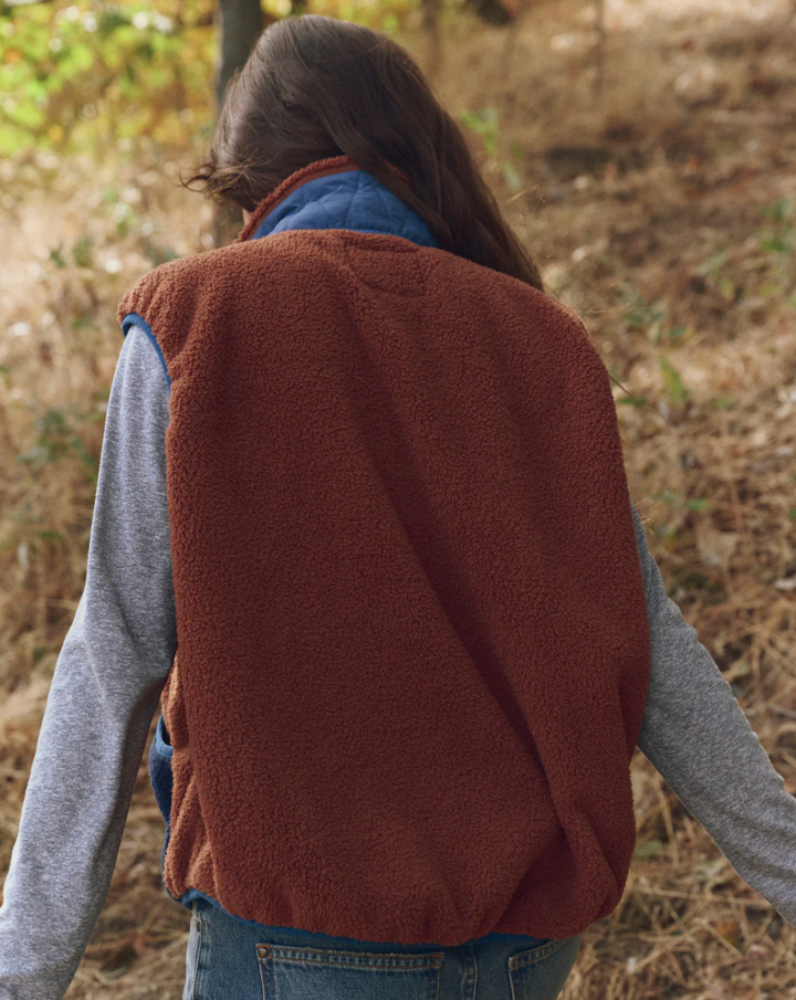 The Great Outdoors. Plush Tundra Vest in Chocolate & Navy
