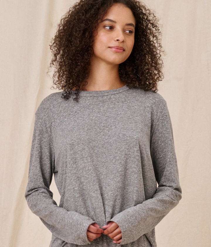 The Great. The Long Sleeve Crop Tee - Heather Gray