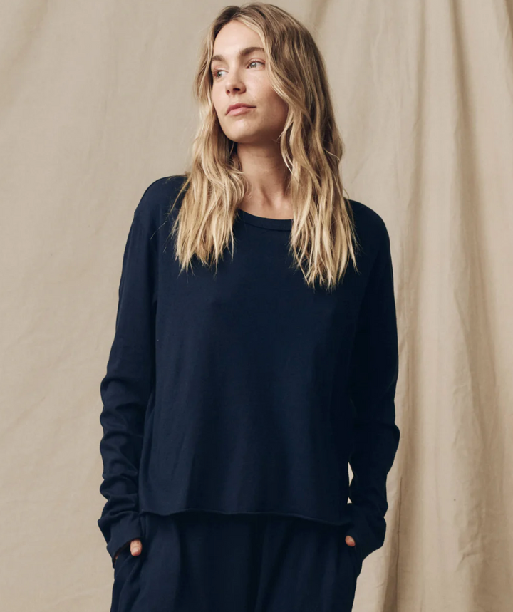 The Great. The Long Sleeve Crop Tee - True Navy