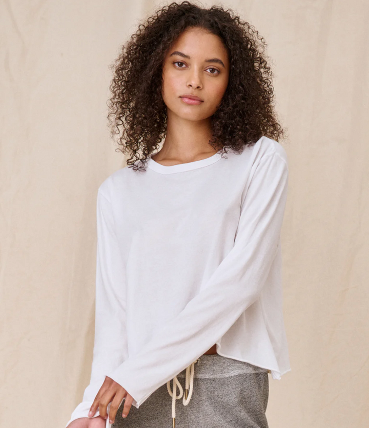 The Great. The Long Sleeve Crop Tee-True White